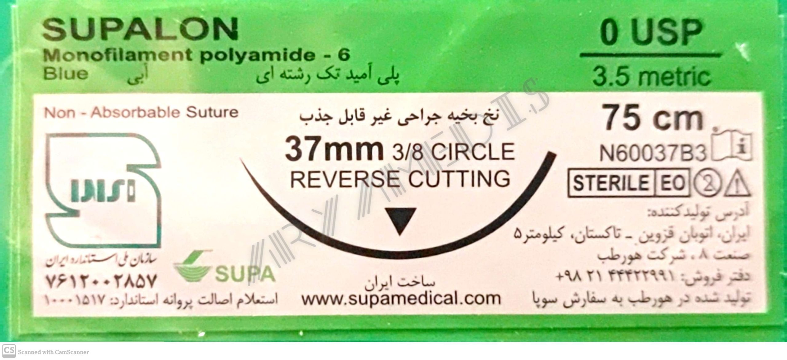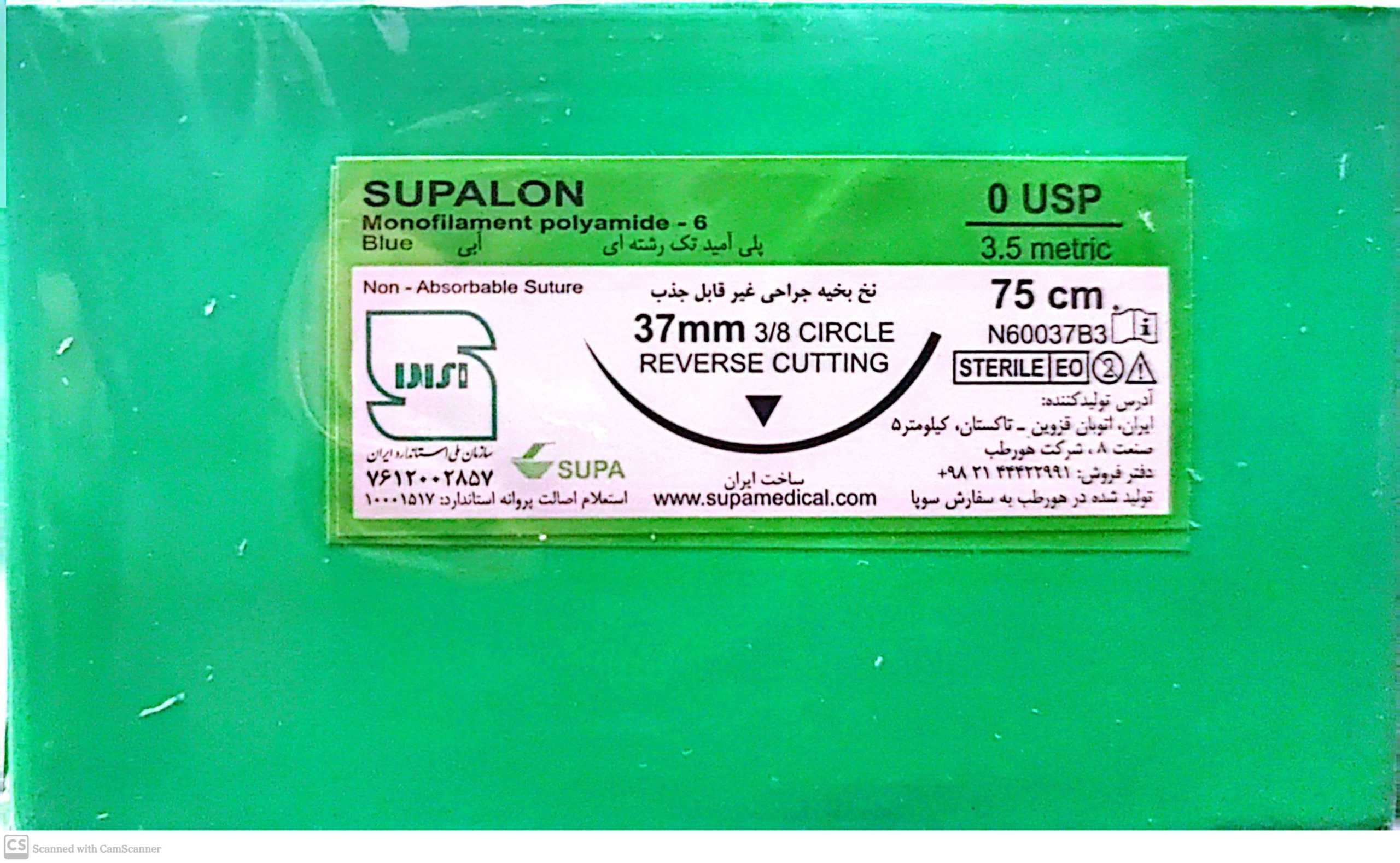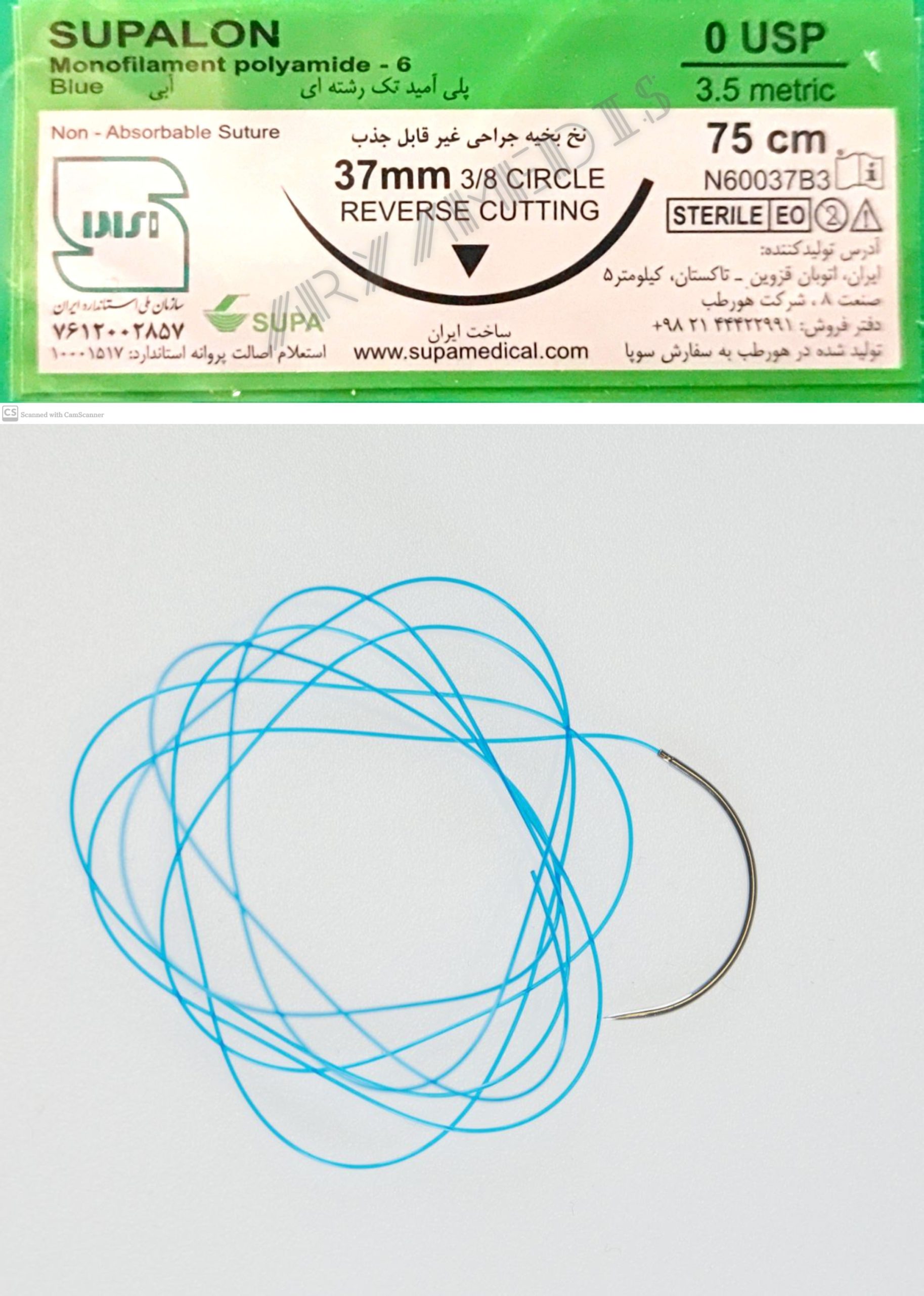 نخ و سوزن جراحی نایلون 0 کات سوزن 37 (غیر قابل جذب مصنوعی سوپا)